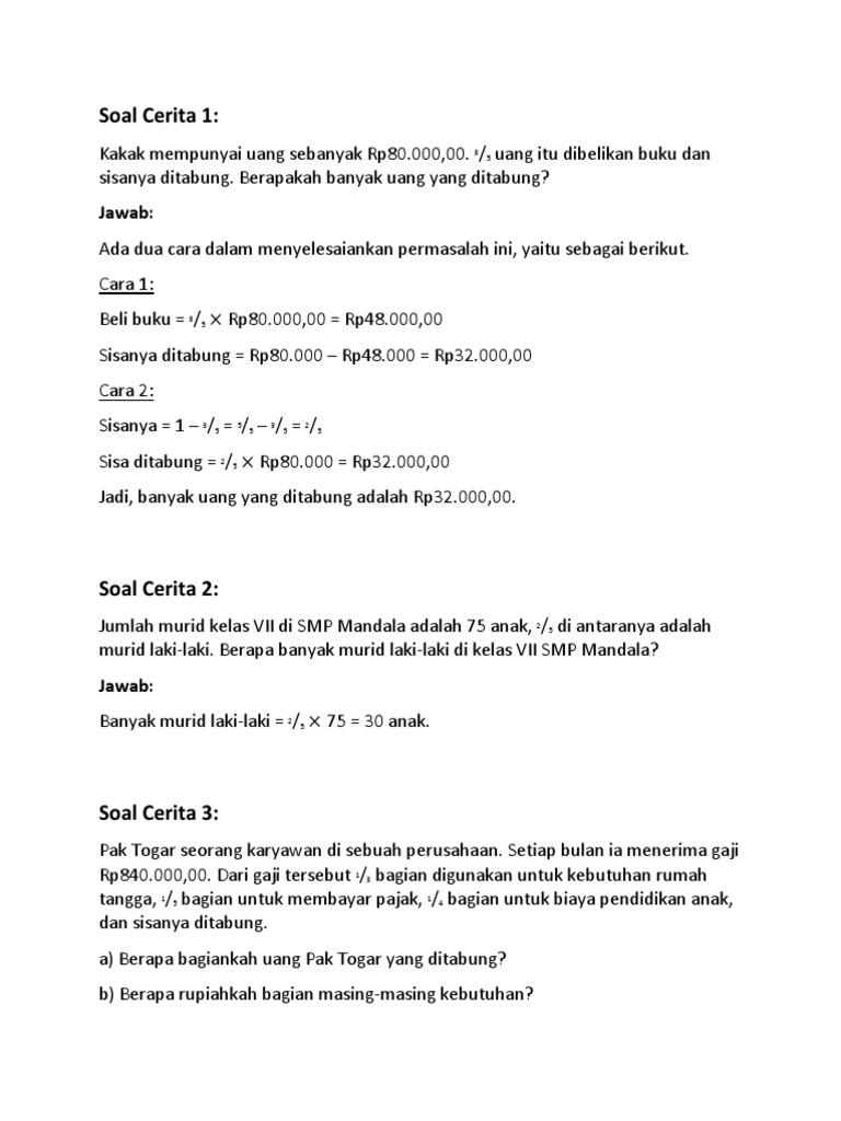 Soal soal pecahan ppt download from slideplayer.info namun harus mempunyai ketelitian dan kecermatan. Kunci jawaban kelas 2 tema 1 subtema 3 pembelajaran 6 … Buatlah soal cerita tentang pejumlahan pecahan. Soal cerita matematika kelas 3 sd semester 2. Soal soal ini dapat sahabat gunakan sebagai bahan belajar untuk lebih menguasai matematika.
